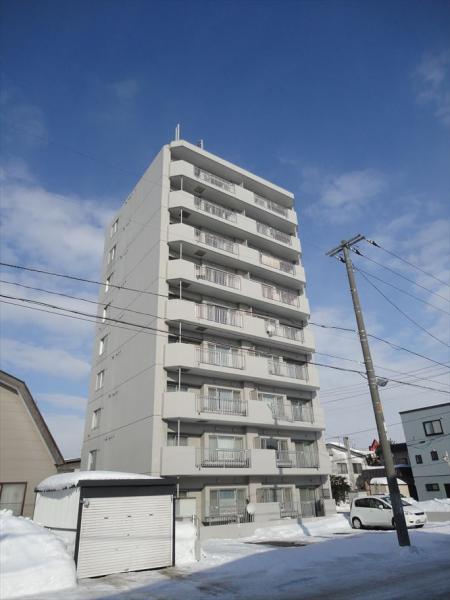 売主・施工は保木建設。地上9階、総戸数18戸、駐車場も18区画ございます。熱源は給湯・コンロがLPG、暖房が灯油となっております。近隣公共交通機関は、中央バス北37条東8丁目まで徒歩3分。外観はコンクリート打放しで重厚な印象。エレベーターは6人乗りが1基ございます。各専有部は2LDK(61.11平米)が1戸、3LDK(70.83平米)が17戸のファミリータイプ。内装はリビングが11.6帖、キッチンが3.4帖だから、テーブルとソファーがゆったりと配置でき、キッチン裏も食器棚を置いても余裕のある広さです。洋室・和室はそれぞれ約5.8帖から6帖で収納完備なのでプライベートの空間もしっかりと確保できます。近隣には、栄西小学校まで徒歩9分、栄町中学校まで徒歩12分なのでお子様の通学も安心です。